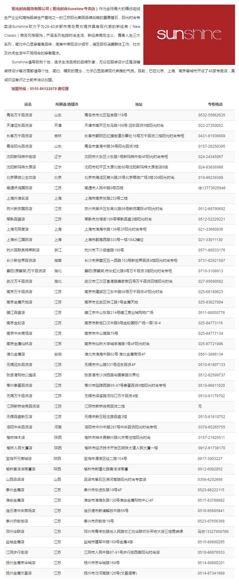 Copyright © 1986 - 2019 Jiangsu Sunshine Group Co., Ltd. All Rights Reserved. 江苏阳光集团有限公司版权所有【 苏ICP备15018739号-2 】