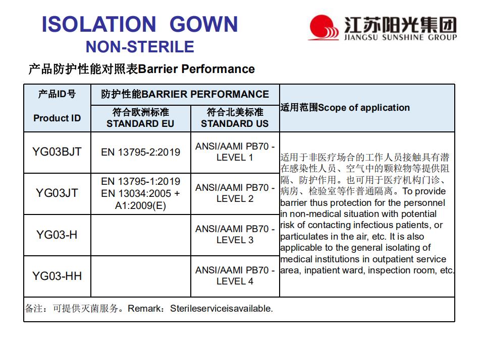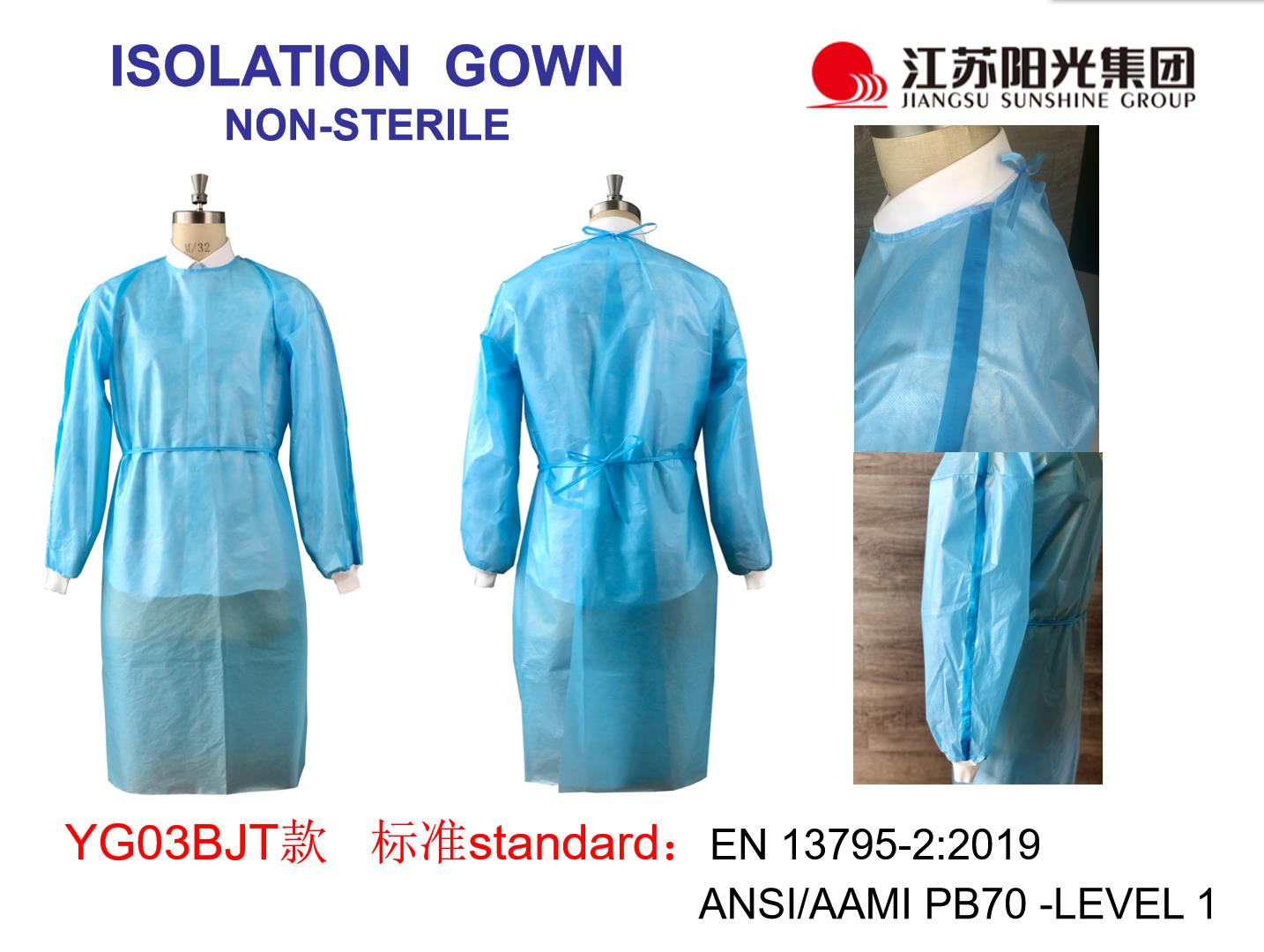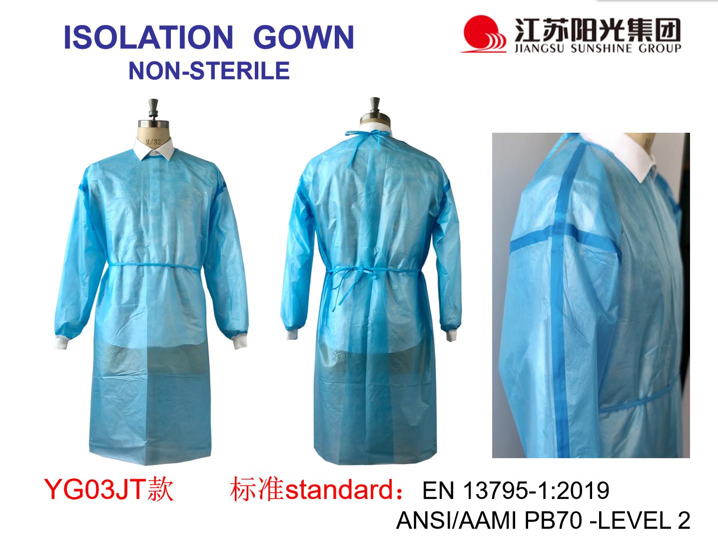 一次性隔离衣(非灭菌)适用于非医疗场合的工作人员接触具有潜在感染性人员、空气中的颗粒物等提供阻隔、防护作用。也可用于医疗机构门诊、病房、检验室等作普通隔离。用于医务人员在接触避免受到血液、体液、和其他感染性物质污染,或用于保护患者避免感染的防护用品。隔离衣是既防止医护人员被感染或污染又防止病人被感染,属双向隔离。